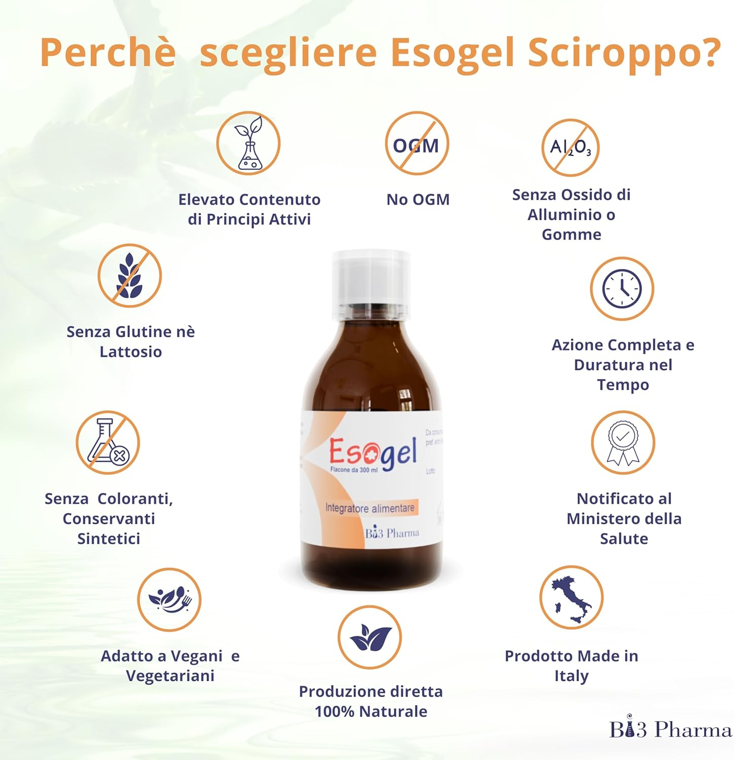Esogel Sciroppo Blocca Il Reflusso Gastoesofageo in modo Naturale - sicuro per il Bambino