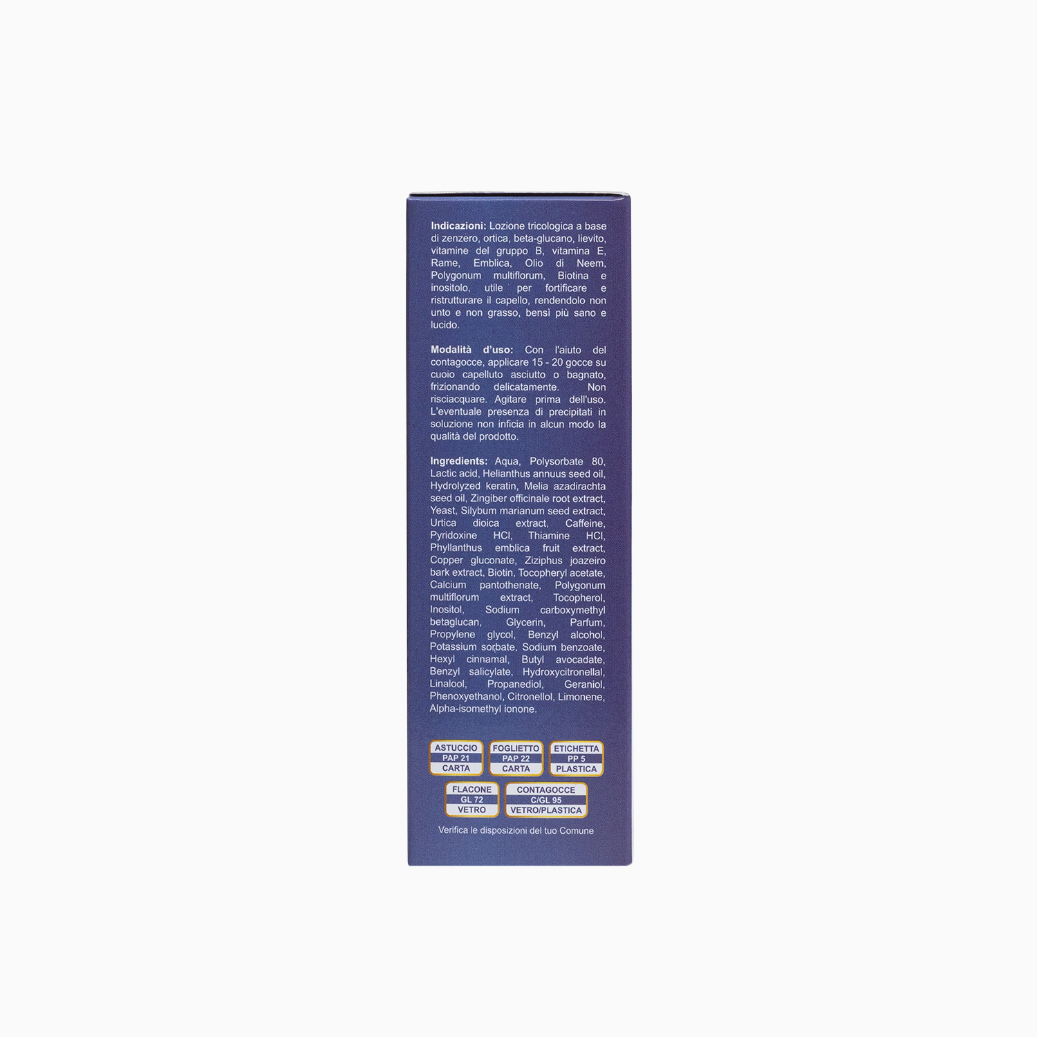 Krinesia Lozione tricologica a base di zenzero, ortica, beta-glucano, lievito, vitamine del gruppo B, vitamina E, Rame, Emblica, Olio di Neem, Polygonum multiflorum, Biotina e inositolo, utile per fortificare e ristrutturare il capello, rendendolo non unto e non grasso, bensì più sano e lucido.