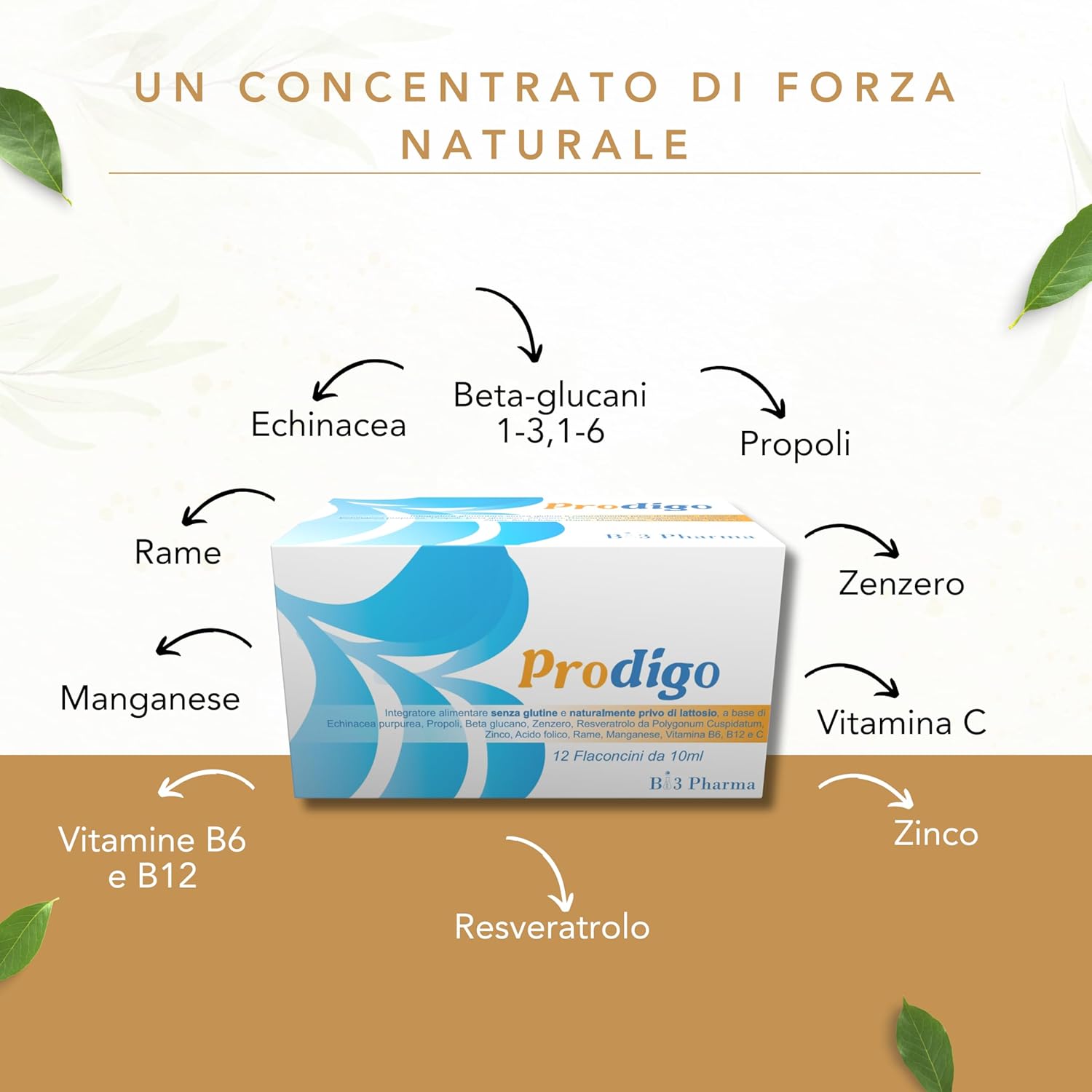 Prodigo® Integratore Difese Immunitarie Adulti e Bambini - Completo | Supporto Immunitario 4 Stagioni | Multivitaminico Completo con Echinacea, Betaglucano, Vitamina C, Zinco Rame e Manganese -Ideale nei Cambi di Stagione